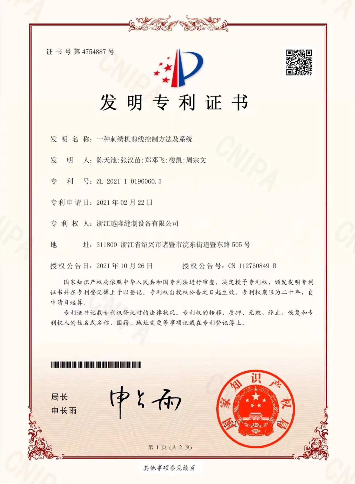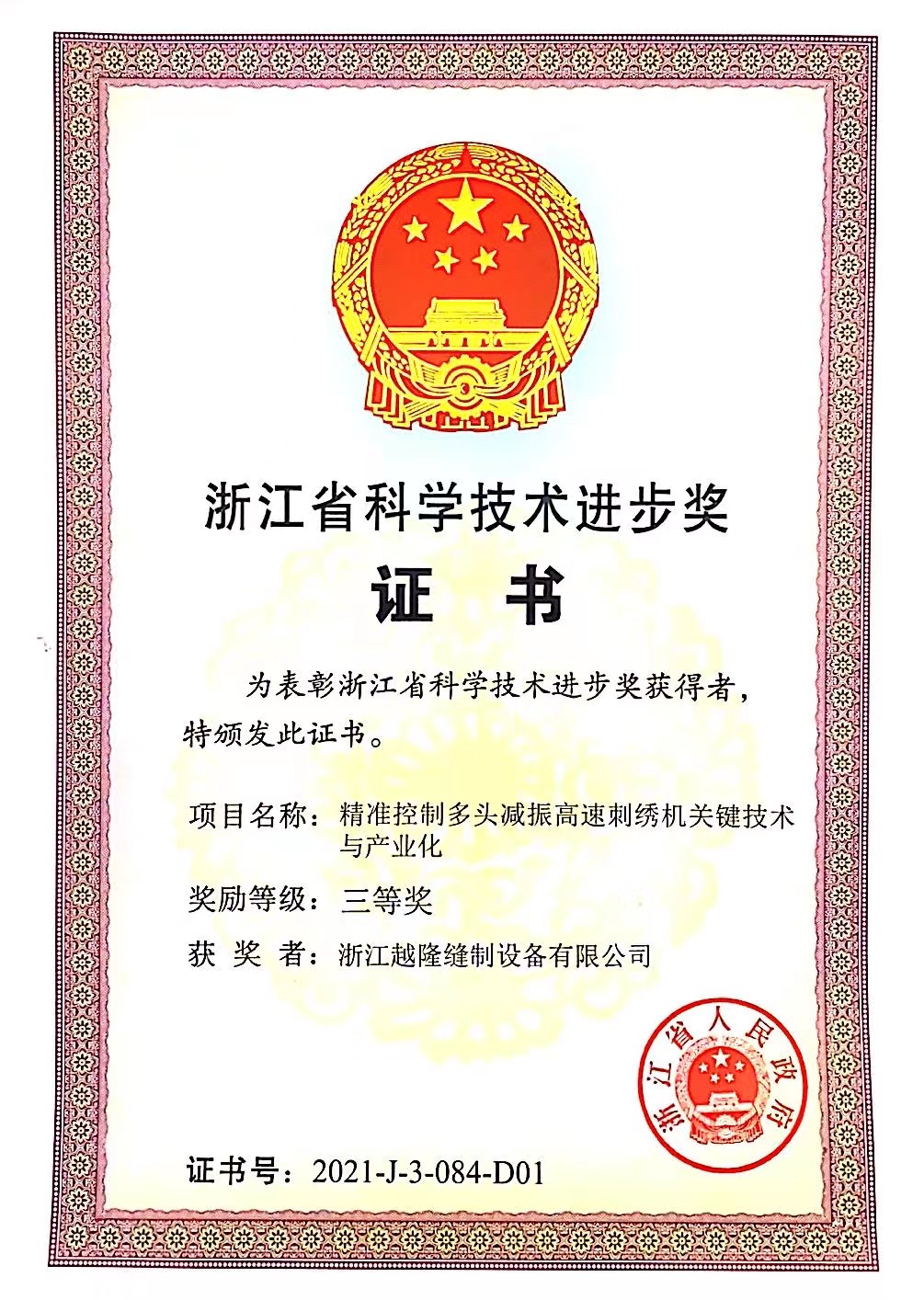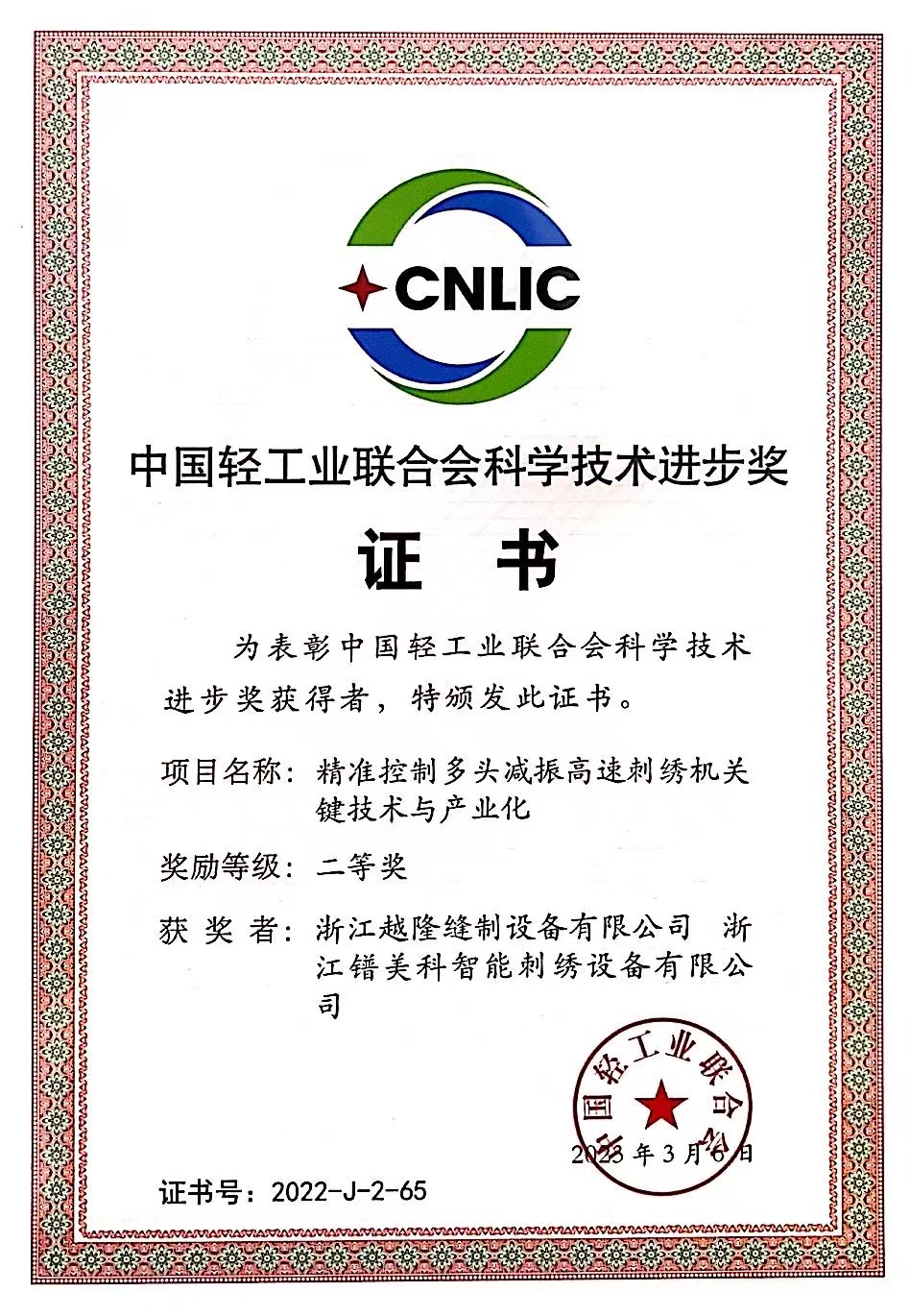 中国軽工業刺繍機業界のトップ10企業にランクイン。中国軽工業設備製造業界のトップ50企業にランクイン。「高速タオル混紡刺繍機」は浙江産ブティックに選ばれました。2インチ独立穴彫りレース多頭刺繍機は「諸曁市イノベーション三等賞」を受賞。「高速インテリジェント刺繍機生産デジタル工房」は諸曁市デジタル変革モデル企業に選ばれました。紹興市2つの新しい組織から「五星双強」を授与されました。
