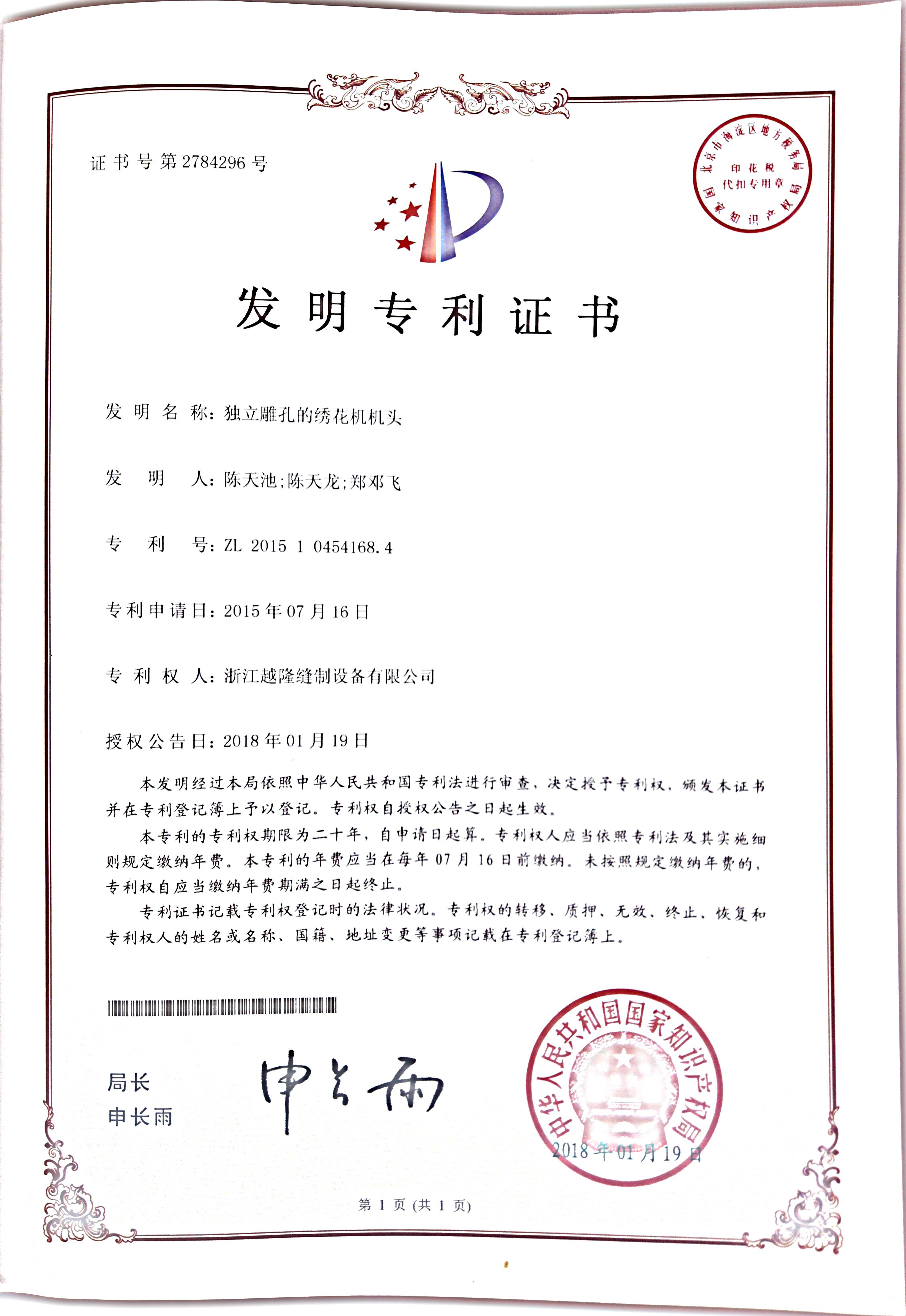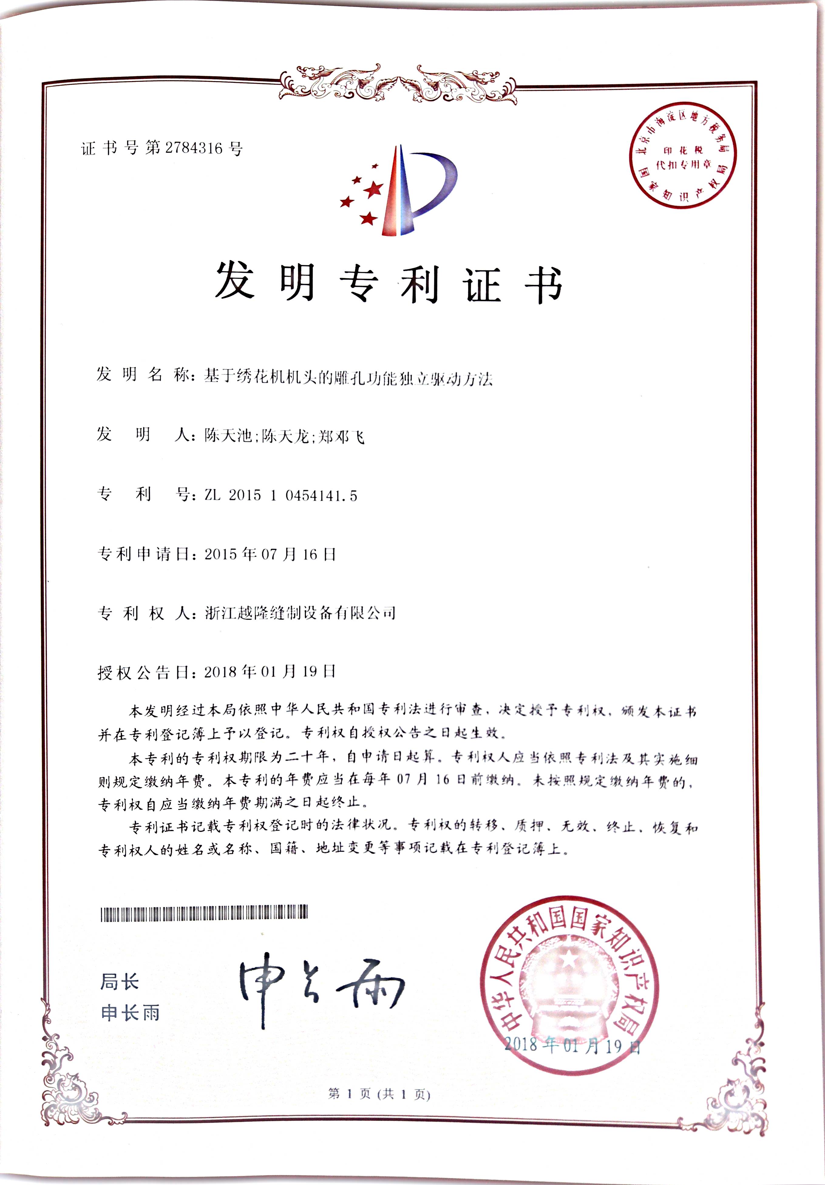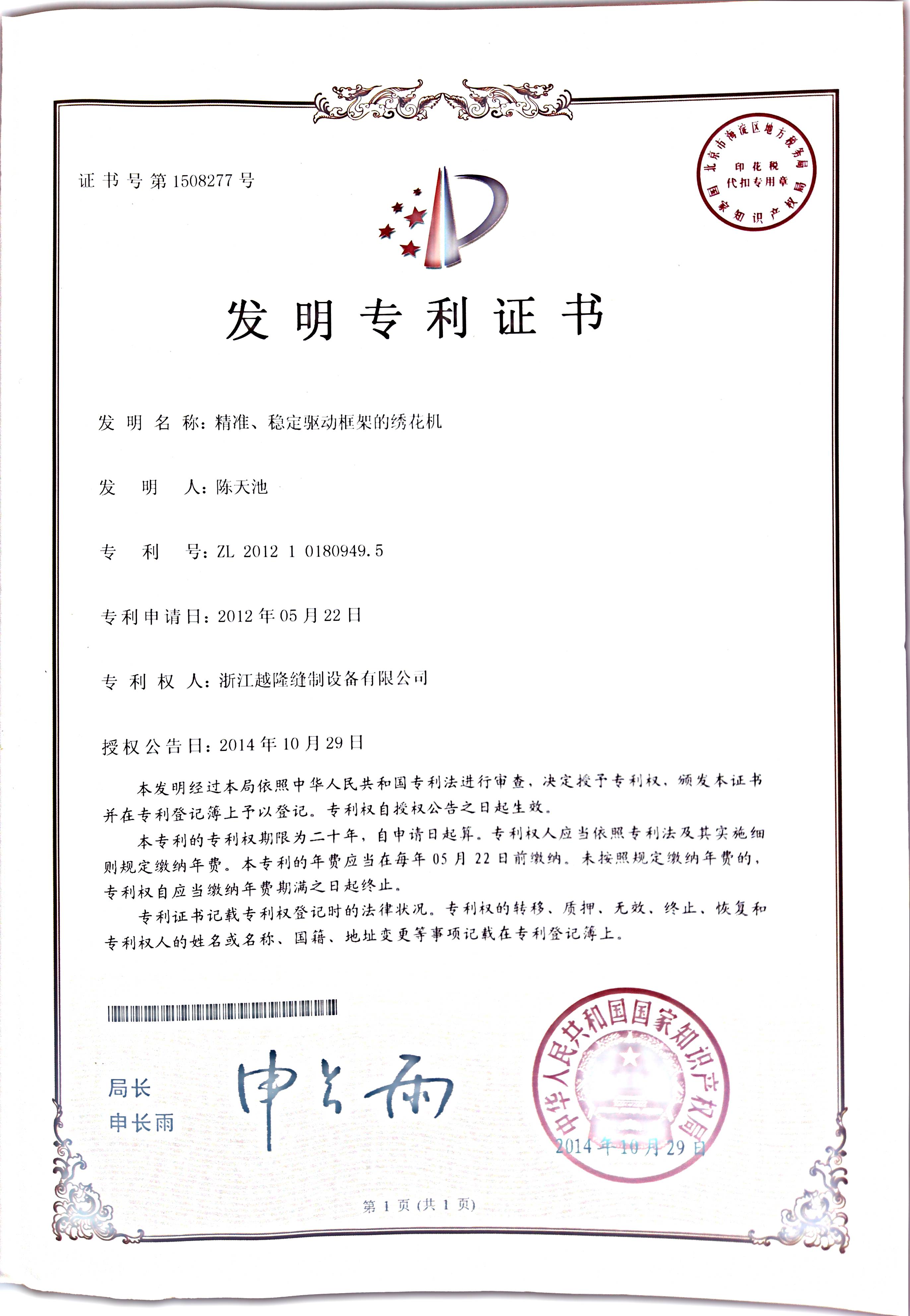Yuemei Embroidery Machinesは常に技術革新を推進し、インテリジェント制御システム、効率的な刺繍工程、省エネ駆動技術といった主要分野をカバーする数多くの独自開発特許を保有しています。当社の特許技術は、刺繍機の精度、速度、安定性を向上させるだけでなく、インテリジェントなソリューションによって業界標準を再定義し、お客様に卓越した価値を提供します。継続的な技術革新を通じて、刺繍機業界の効率性、デジタル化、そしてインテリジェンス化を推進し、世界中のお客様がより正確で効率的な刺繍生産を実現できるよう支援することに尽力しています。