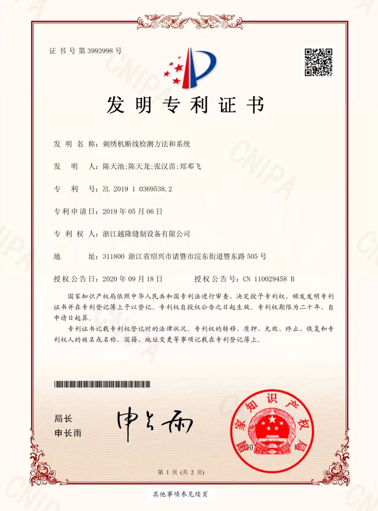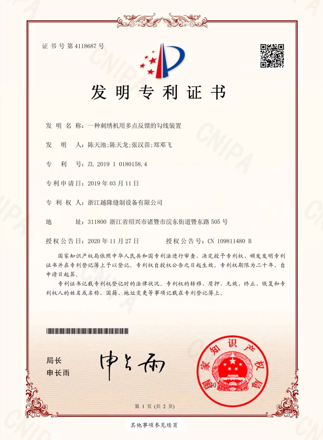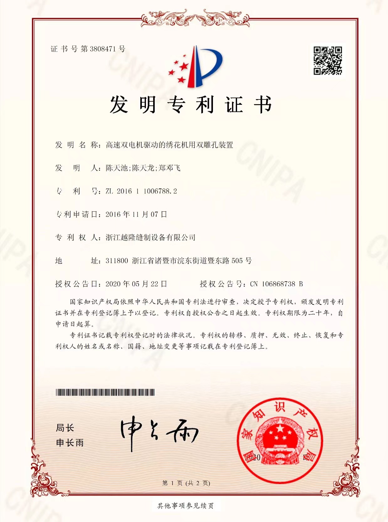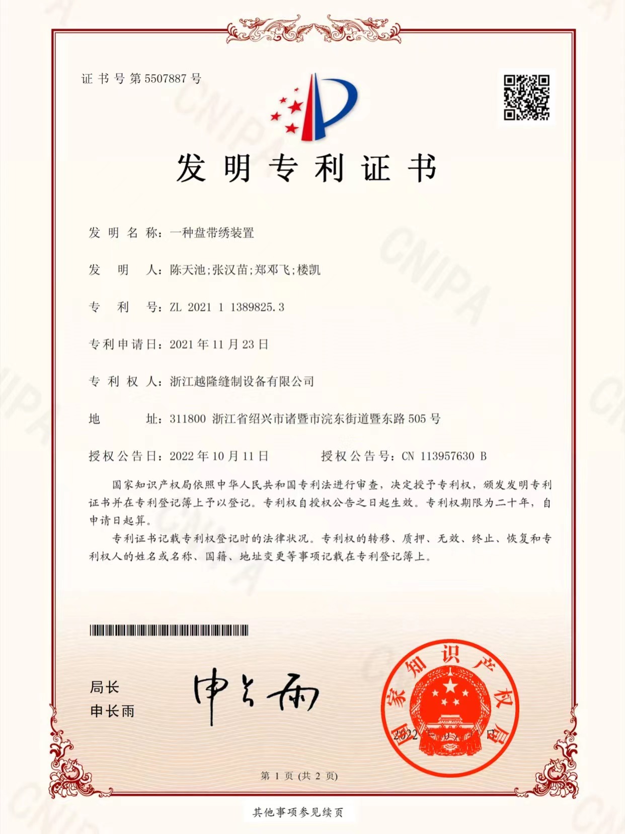 Yuemei Embroidery Machinesは常に技術革新を推進し、インテリジェント制御システム、効率的な刺繍工程、省エネ駆動技術といった主要分野をカバーする数多くの独自開発特許を保有しています。当社の特許技術は、刺繍機の精度、速度、安定性を向上させるだけでなく、インテリジェントなソリューションによって業界標準を再定義し、お客様に卓越した価値を提供します。継続的な技術革新を通じて、刺繍機業界の効率性、デジタル化、そしてインテリジェンス化を推進し、世界中のお客様がより正確で効率的な刺繍生産を実現できるよう支援することに尽力しています。